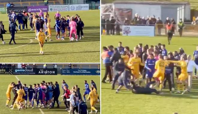 社交媒体流传视频显示,两队球员在中场发生混战,随后教练组成员也纷纷入场加入冲突。